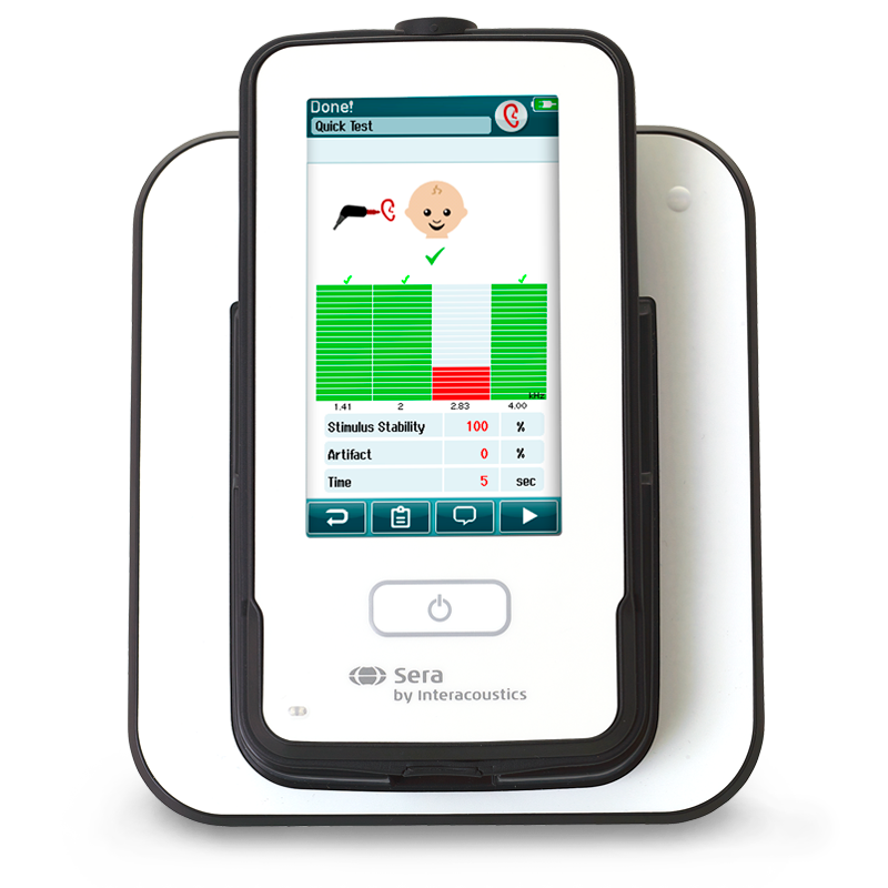 La combinazione di DPOAE, TEOAE e ABR automatico, fa di Sera il dispositivo perfetto per lo screening uditivo neonatale. La possibilità di individuare in maniera semplice e rapida una potenziale perdita di udito nel neonato è fondamentale per qualsiasi protocollo di screening neonatale.